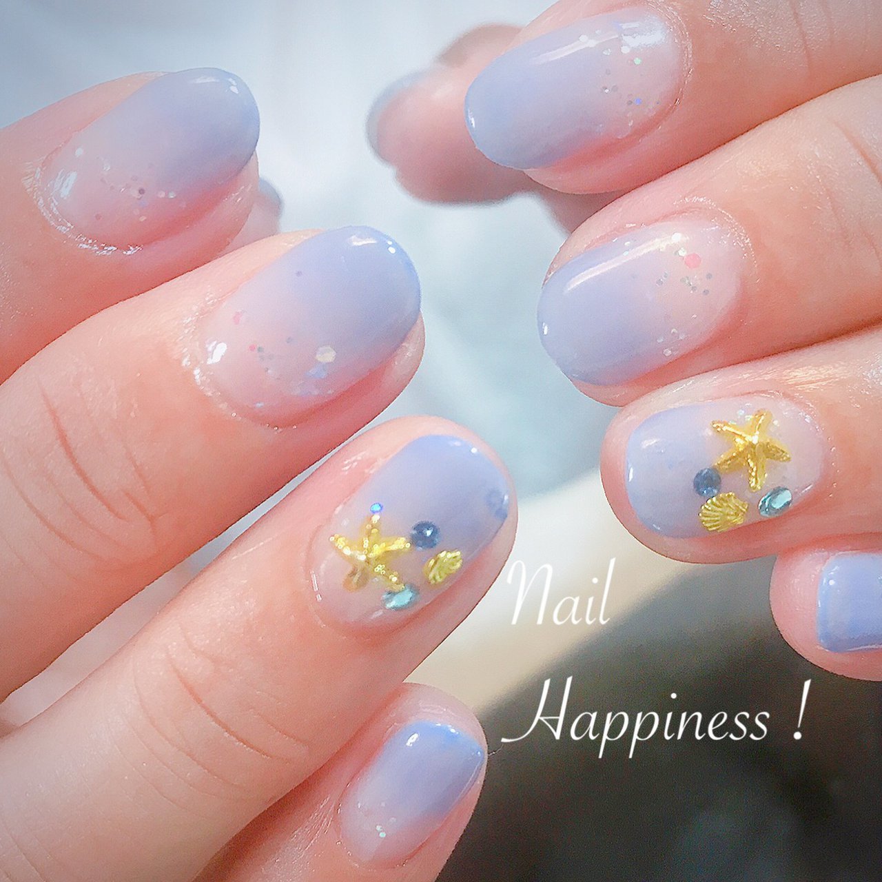夏 シンプル グラデーション ラメ スターフィッシュ Nail Happiness ネイルハピネス ささきまきのネイル デザイン No ネイルブック